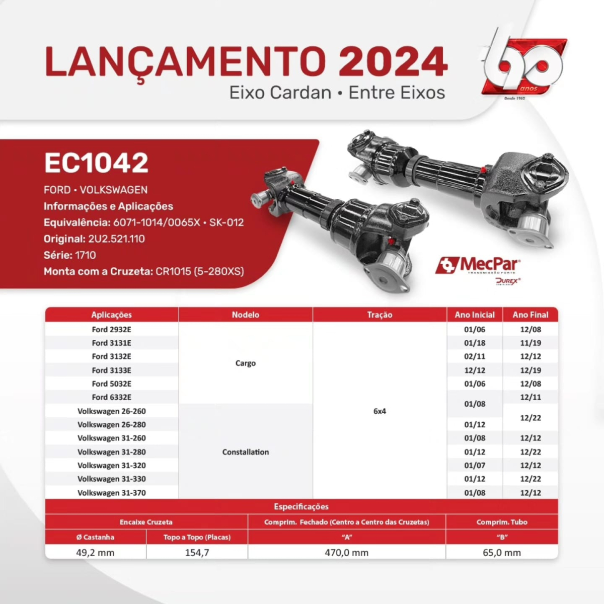 A MecPar atua nos segmentos de: EIXO E COMPONENTES PARA CARDANS, CRUZETAS E SEMIEIXOS.